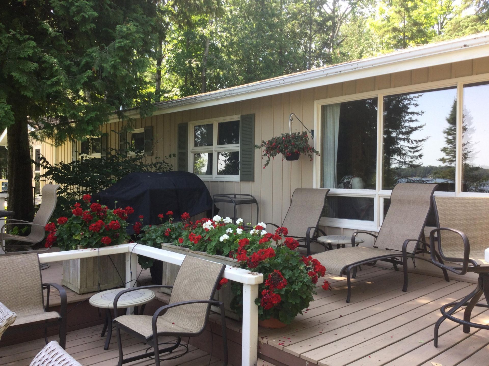 Beautifully maintained WOODLAND PARK 5 bedroom home with a substantial BOATHOUSE. New furnace in 2026, new well pump in fall 2025,and a recently updated kitchen. The extensive tiered decking allows for great group entertaining while enjoying the fantastic water views of Sheppard Bay. Unique to this property is a boat hoist for a 26' wood boat inside the boathouse, a sandy beach area for the kids to play, an extra outbuilding housing beverage coolers and refrigerators, a newer 26' x 26'garage with attic, lovely terraced garden to waterfront with a unique stone architecturally designed wall, plus a WHOLE HOUSE DEHUMIDIFER and CENTRAL AIR! Tucked away on a heavily wooded lot with a winding driveway off a private road adds to the ambiance of the home. Summer living at it's best!